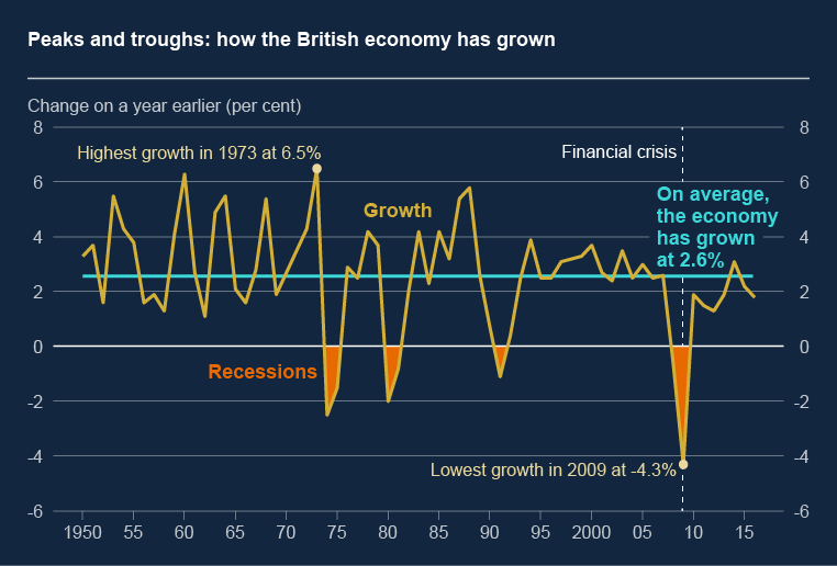 How the path of growth has peaked and troughed since 1949