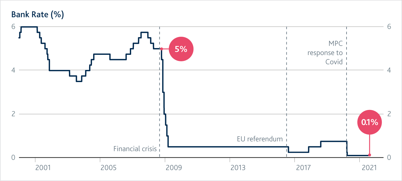 First, we cut interest rates to 0.1% in March 2020 and kept them there.