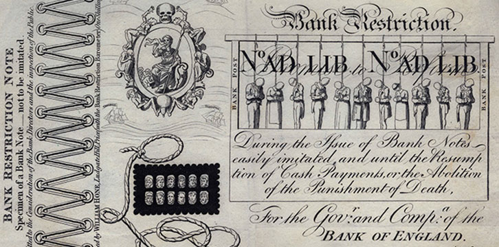 The Bank of England has produced banknotes since the late 1600s. Our collection includes examples of every note we’ve ever made. We also hold artwork by historic banknote designers, machinery and equipment relating to banknote production and examples of counterfeit and imitation notes. It is the largest collection of Bank of England notes and associated material in the world.