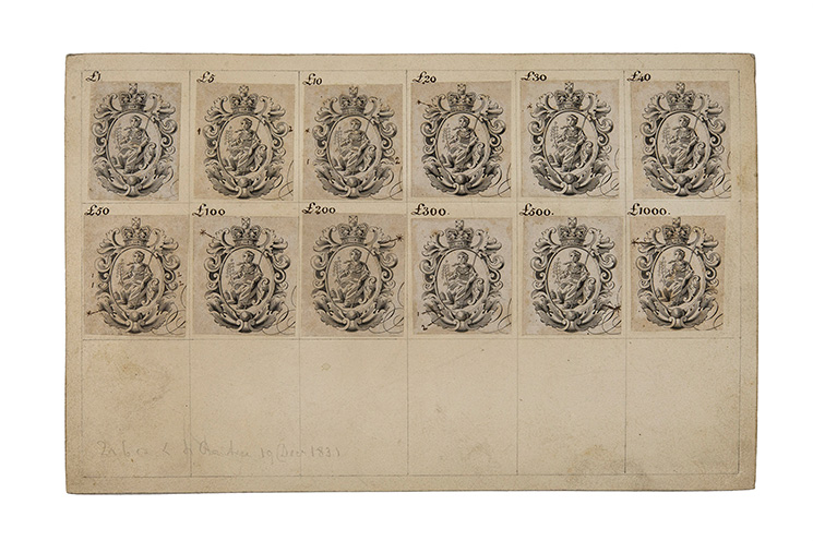 Our collection includes design work, printing tests and master drawings for many of the banknotes the Bank of England has produced over time. Banknotes used to be designed by hand but today they are created using computers.