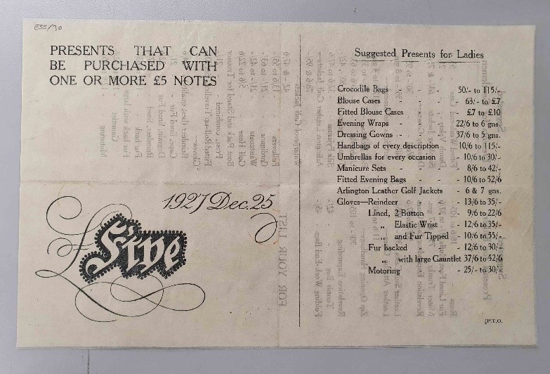 Clearly Watson Prickard were trying to think of ways to share their extensive range with the public that wasn't a boring old catalogue. After all, imagery from a banknote certainly catches the eye of the consumer! But the Bank of England wasn’t tickled with the reproduction so closely resembling a banknote. I can’t imagine HM Treasury was too chuffed either, as apparently Watson Prickard also copied £1 Treasury banknotes, although we sadly don’t have examples of these in the collection. In the end, the matter was passed to the Public Prosecutor.