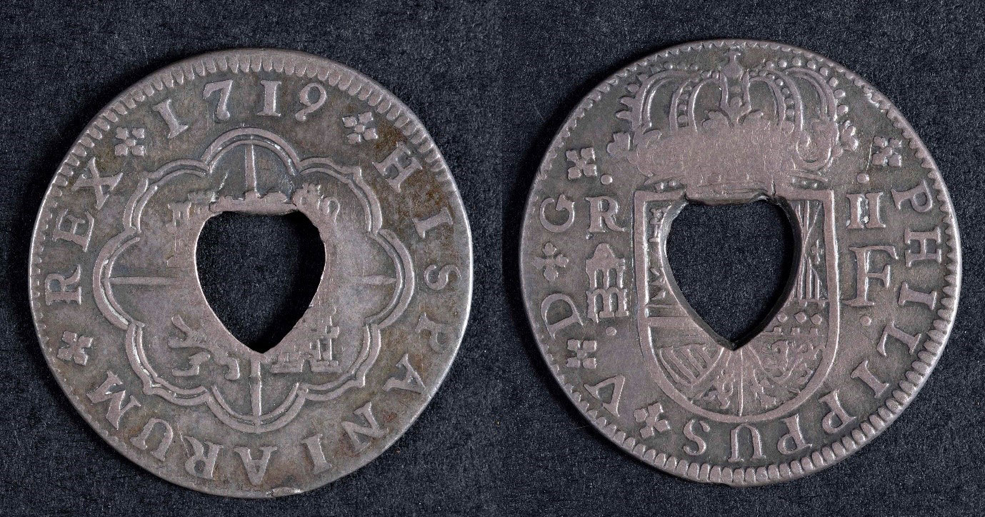 Transatlantic slavery and the slave trade supported British colonialism, expanding Britain’s trade links as well as its power and influence by seizing control of other countries. Part of Britain’s colonial rule in places like the Caribbean was introducing British currency. But making new coins was expensive and time consuming. To speed up the process, existing coins from one country could be made into legal currency in another by adding a stamp mark in a process called countermarking. Coins were stamped with special marks to make them a valid form of currency in different Caribbean countries. Most of these coins are Spanish 8 reales, also known as silver dollars or pieces of eight. These were minted in huge quantities in Spanish colonies in the Americas, and were an important trading currency during this period.