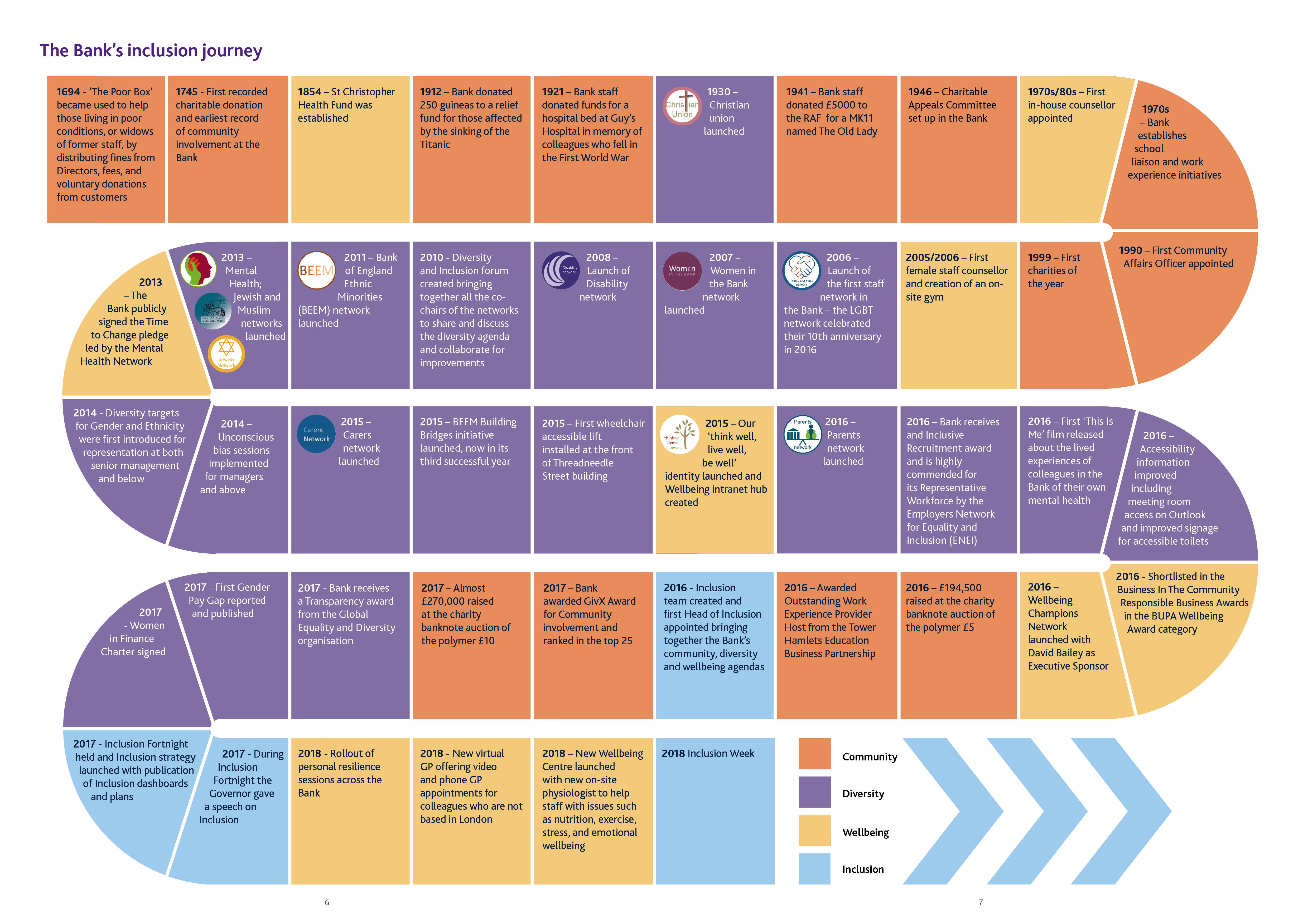 We have also taken the time to look back over our inclusion journey – starting in 1694 when we were established all the way through to the current day. We have highlighted donations made to various causes, including in 1912 to those affected by the sinking of the Titanic; the appointment of our first in-house counsellor; the launch of all our successful employee networks; and the recognition we have recently received for our inclusion initiatives.