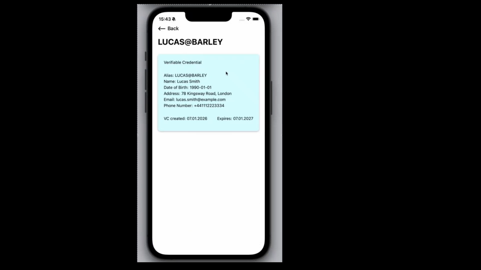 Verifiable credentials, also known as trusted credentials, enable users to prove specific characteristics about themselves in a privacy-preserving way. In the Lab, these credentials map to payment aliases for secure payee authentication, ensuring payments go to the intended recipient. At creation, each account is automatically assigned a random alias, with a corresponding verifiable credential for privacy. Users may also add additional aliases, such as random strings, phone numbers or email addresses, as needed. This underlying data (including the alias and other relevant details) is shared with relevant PIPs for anti-money laundering compliance during the payment process but is never accessed by the demonstration ledger or its operator.